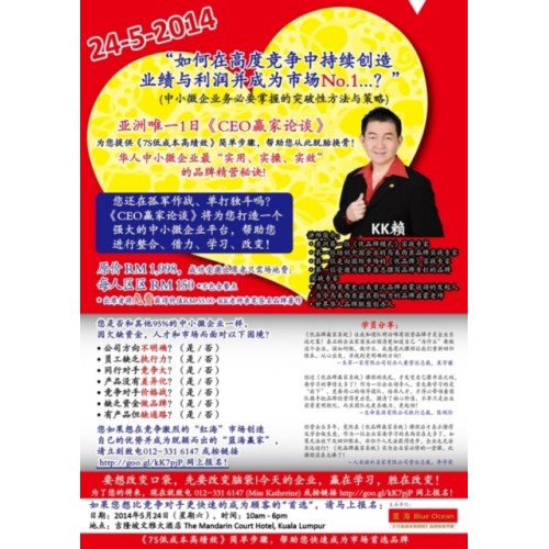 “如何在高度竞争中持续创造业绩与利润并成为市场No.1...?” 中小微企业务必要掌握的突破性方法与策略! 亚洲唯一1日《CEO赢家论谈》为您提供《7S低成本高绩效》简单步骤,帮助您从此脱胎换骨! 华人中小微企业最实用、实操、实效的品牌精营秘诀。。。 More »